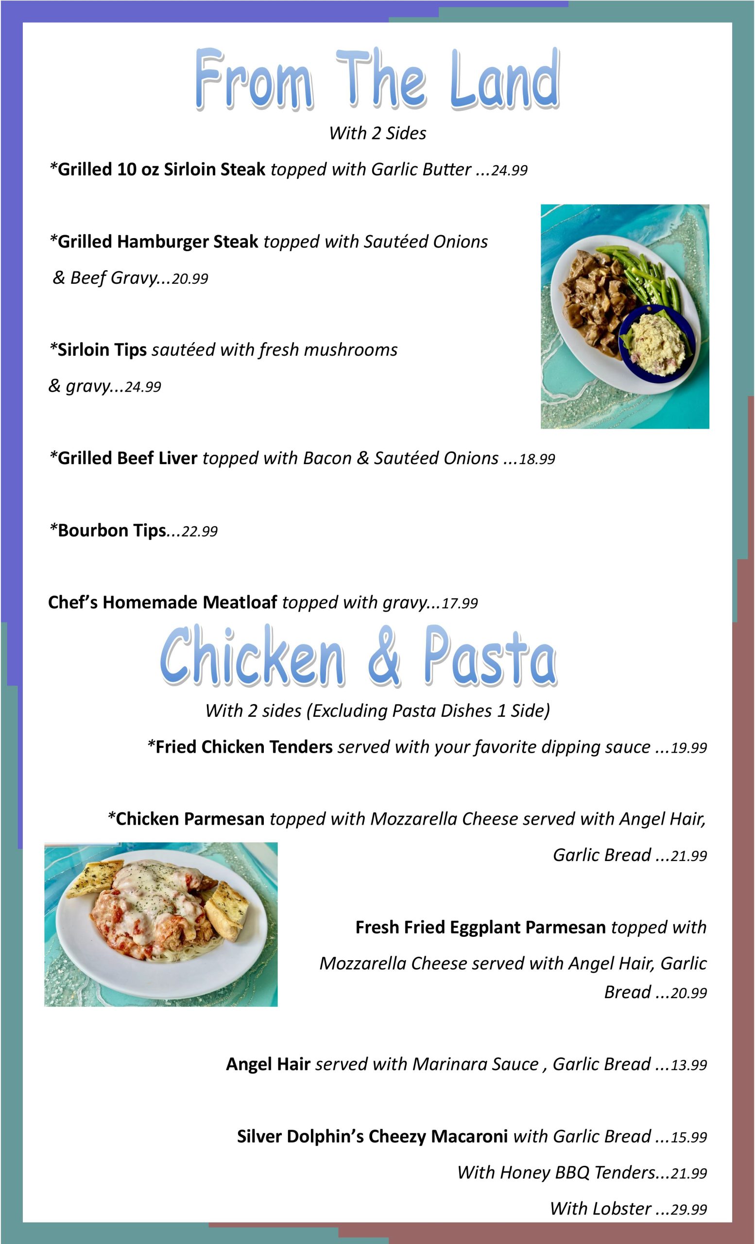 At Silver Dolphin Restaurant & Country Store, we take pride in serving delicious, made-from-scratch meals in a relaxed waterfront setting. Our menu features a variety of fresh seafood, hearty comfort food, and classic favorites, perfect for any time of day. Whether you’re stopping in for a fluffy stack of pancakes at breakfast, a fresh Lobster Roll for lunch, or a satisfying seafood dinner, we have something for everyone. Pair your meal with a handcrafted cocktail, a refreshing drink, or a sweet treat from our Country Store.